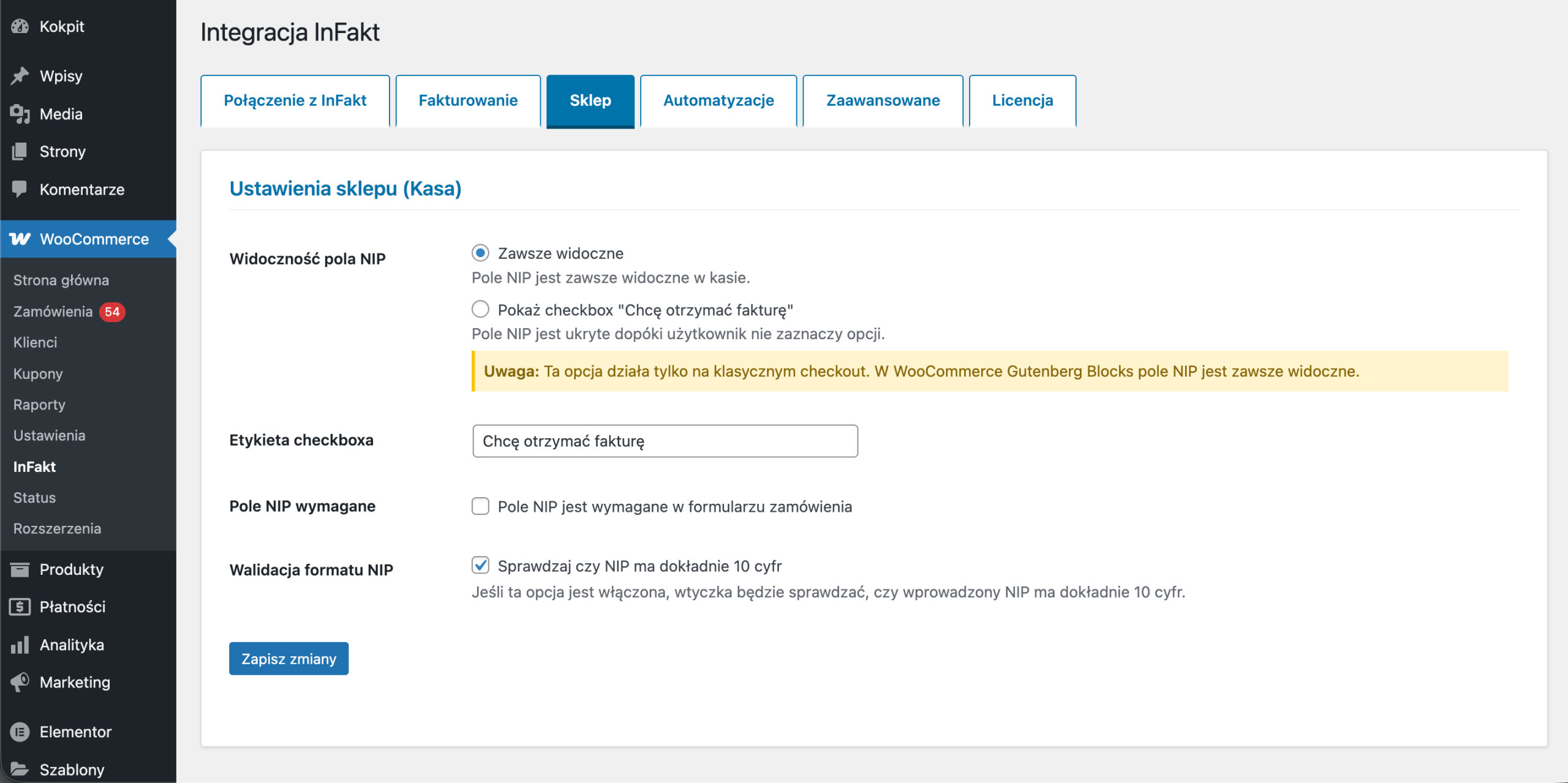 invoicing-integration-for-infakt-and-woocommercefolder to/wp-content/plugins/directory. - Activate the plugin in WordPress Plugins menu.
